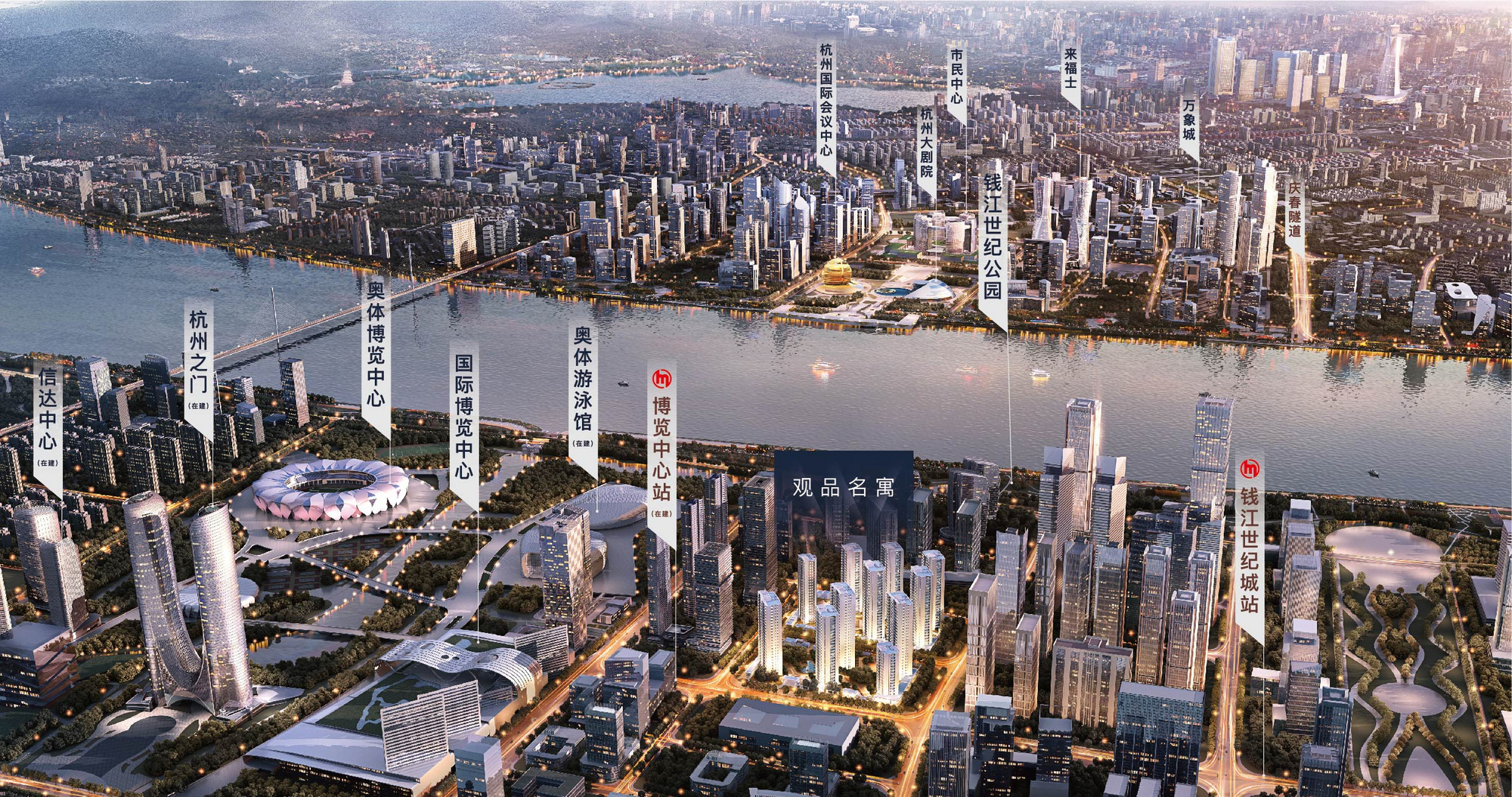 公交:双地铁,距离6号线博览中心站(在建)步行约360米,距离2号线钱江世纪城站步行约860米。隔街博奥隧道(2020年底开通),驱车5分钟即达钱江新城核心市民中心。